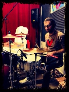 E questa sera mettiamo sotto il nostro buon Francesco Calabretti; registriamo le parti di batteria. Mi sa che sabato sarà la mia volta… Per questa song: microfonatura a 4 microfoni!! Molto anni 70…